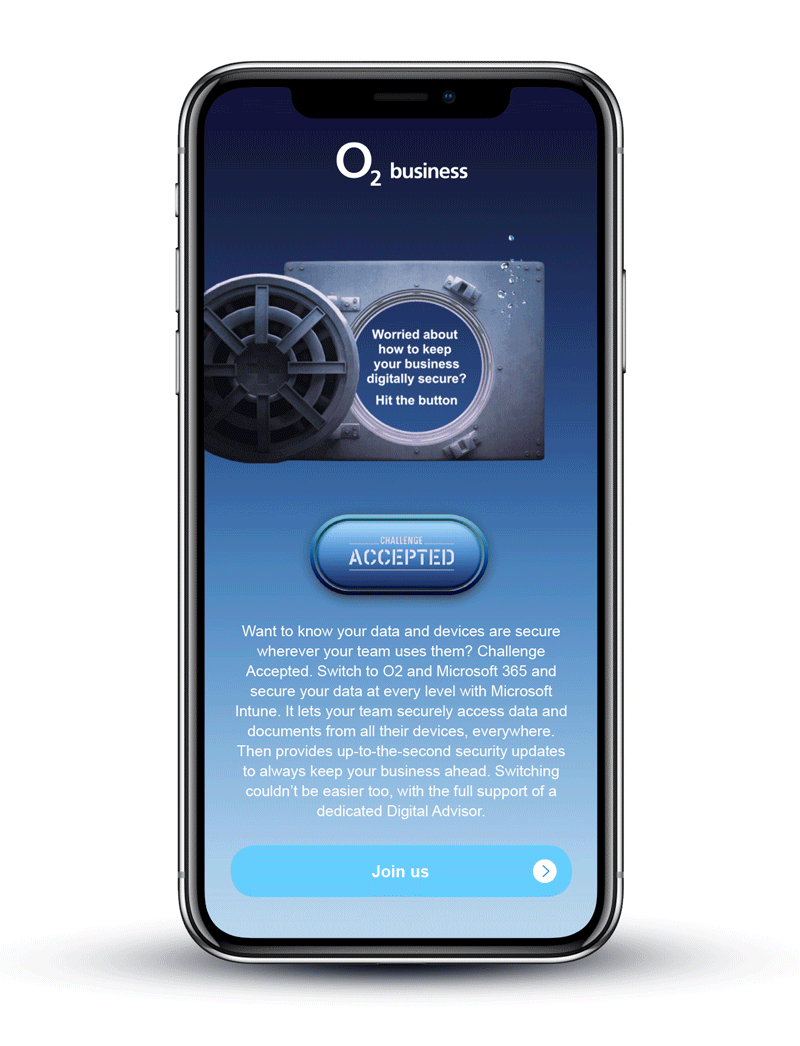 We created a suite of kinetic emails to showcase the key benefits Microsoft Office 365 on O2. Using cutting edge kinetic technology we were able to create engaging interactive emails, with all the key information appearing on a single screen that linked to an external landing page.